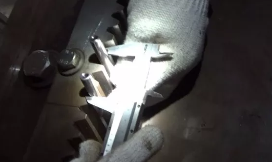 5、用游標(biāo)卡尺測量新齒條與舊齒條的齒距如圖。記下讀數(shù)。為第二次讀數(shù)。保證第二次讀數(shù)比第一次讀數(shù)小0.2mm。
